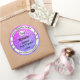 Make a lasting impression with this elegant and modern product label design featuring a luminous pink and purple gradient small to large glitter graphic with sparkling stars. The pretty white circle border matches with a silver shimmery frame and diamonds.