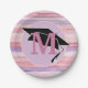 Pink Purple Striped Graduation Cap Monogram Paper Plate