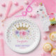 Pink Purple Teal Crown Princess Baby Shower Girl Paper Plate