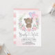 Pink Purple Teddy Bear Balloons Girl Baby Shower Invitation