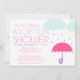 Our Pink & Purple Umbrella Adoption Shower invite features purple hearts falling onto a cute pink and purple umbrella.