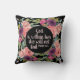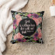 Pink and purple watercolor floral on a black background, Christian Bible verse decorator pillow. Text says, "Psalm 46:5 God is within her; she will not fail."