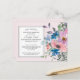 Elegant botanical graduation party invitation postcard with beautiful pink, purple, and blue watercolor flowers on a pink background. Customise for a high school, college, or university graduation party.