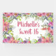 Celebrate her Sweet 16 in style with this personalised birthday banner featuring lush pink and purple watercolor florals. The guest of honour’s name and age are displayed in elegant script, making it a perfect backdrop for party photos, dessert tables, or entryways. This banner brings a fresh, feminine look to any celebration and coordinates perfectly with our full line of floral party supplies, including matching invitations, signs, napkins, plates, and thank-you cards.