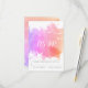 Modern abstract pink, purple and coral watercolor splash with starfish and seagulls beach wedding RSVP response card showcasing a hand painted watercolor paint splash with texture, two starfish and seagulls in white and text in white and grey.