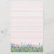 Pretty lined stationery decorated with a wildflower meadow with purple, pink and blue flowers painted in watercolor.