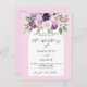 A pink background and a white arch frame, decorated with pink and purple flowers. Personalise and your names and the details.