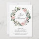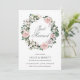 Very pretty just married or elopement announcement features blush pink and purple roses and white apple blossom flowers. They are nestled in sage green leaves to create an elegant floral wreath. A second floral arrangement on the back decorates more text that you can personalise. This wedding announcement is part of the Rosilyn Collection. You'll find additional mailing accessories to create a unique announcement suite.