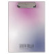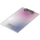 Create a sleek, modern clip board design featuring a chic gradient of pink, purple, and white. The minimalist aesthetic is complemented by customizable black typography for a professional touch.