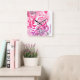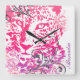 Pink Purple Wild Cat Leopard Cheetah with Flourish Square Wall Clock