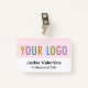 Personalise our professional PVC name badge with your company logo, employee name, job title, or other custom text. It's made of durable PVC plastic. Designed in light pink and other colours with a modern minimalist design by MISOOK. All colours are customisable. Available with a lanyard, metal clip, or retractable reel. The dimensions are 3.38 inch x 2.13 inch. No minimum order quantity and no setup fee.