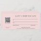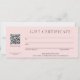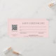 Elegant business gift certificate featuring a simple and minimal pink design. A traditional layout with a modern feature of a qr code. Simply add the URL of your website to generate a QR code or remove it in the design editing tool. The back has your tagline or other info in an elegant script. This professional gift certificate is versatile for any type of business.