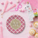 Pink Quatrefoil With Girly Monogram and Name Paper Plate