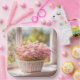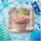 Pink bouquet of Queen Anne's Lace in a white wicker basket near a sunny window.