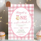 Pink Quirky One Cute Chic Birthday Invitation, Pink Coquette Bow Birthday Invite, Editable Preppy Little Chicken First Birthday