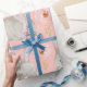 Easter gift wrap, in girly Pink. Features cute Bunnies and flowers.