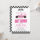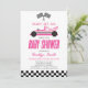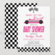 Pink Race Car Chequered Race Flag Baby Shower Invitation