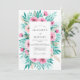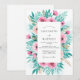This romantic watercolor design features vibrant pink roses and lush teal foliage. The artistic botanical arrangement creates a fresh and airy mood perfect for a seasonal outdoor event. Soft rosebuds and feathery green leaves surround the center, offering a timeless aesthetic for couples seeking a blend of classic floral beauty and modern color palettes.