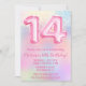 Pink Rainbow 14th Birthday Invitation Girly Pink Glitter birthday party invitation for a 14 year old girl with modern script writing and fun foil balloons.