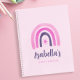 The personalised Cute Purple and Pink Rainbow Sketchbook Girl Notebook design has a sweet watercolor rainbow with a cute sun in purple and pink colours. It is a great sketching notebook to keep all the bright ideas and doodles. Add your girl's name and change the words in text.
