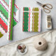Wrap your gifts with a fun and modern pattern of scalloped stripe columns. This pattern is a mix of red, pinks, and greens scallops and feels fresh and festive on a crisp white background and brings a sense of graphic whimsy to the gift stack.