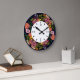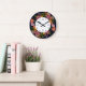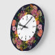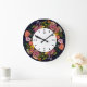 Pink red and yellow aster flower wreath chalkboard large clock