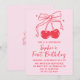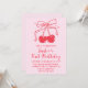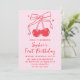 Pink & Red Bow Cherry Fruit 1st Birthday Party Invitation