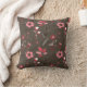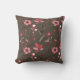 Gorgeous floral pattern featuring pink, brown,red and white flowers and plants on dark brown background.
