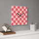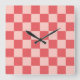 Pink Red Chequered Gingham Pattern Square Wall Clock