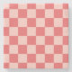 Pink Red Chequered Gingham Pattern Stone Coaster