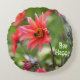 Pink & Red Dahlia Bee Happy Flowers Motivational Round Cushion