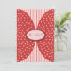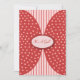 These baby shower invitations are perfect for welcoming a baby girl into the world. Baby shower invitations are light pink with light red stripes in the background. The foreground has light red half circles printed to look like flaps with light pink polka dots. The centre of the front has light pink and red oval with space for text. The reverse side of these baby girl baby shower invitations are light pink and have medium red font. Customise text to suit your needs.