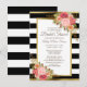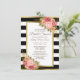 Pink Red Floral Black White Stripes Gold Bridal Invitation