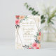 A Romantic and elegant floral watercolor save the date wedding invitation party with hand painted pastel blush pink , bright red, dark grey, blue and yellow flowers arrangement and modern and chic script calligraphy with gold glitter confetti with gold geometric frame terrarium.
