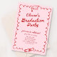 Pink Red Hand drawn Graduation Party Invitation . Grad cap and diploma with squiggle line border hand drawn Graduation Party Invitation. whimsical doodle border syle grad party invitation for her.