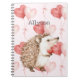 Pink Red Hearts Balloons Hedgehog Notebook