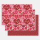 Pink Red Hearts Wrapping Paper Flat Sheet Set of 3