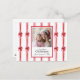 Lovely pink and red Christmas bows and long, dangly ribbons decorate this holiday postcard. They are very cute and even a bit girly. They have a vintage watercolor origin but have a modern appeal. This card accepts your square personal photo and it will look delightful. The salutation is "A Very Merry Christmas". Be sure to edit the "from" script on the front with your own names. On the back of the postcard, the paragraph is only an example and meant to be replaced with your own words, as are the family names and year. We have left room for your return address label at the top. If you do not want words on this side of the postcard, just delete the entries.