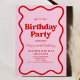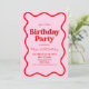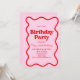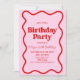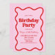 Pink Red Retro Wavy Border Birthday Party Invitation