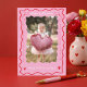 Pink Red Retro Wavy Scribble Child Photo Valentine Holiday Card
