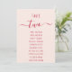 Pink & Red Script Simple Modern Seating Chart Card