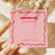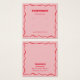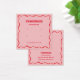Earring display card featuring a red squiggle shape on a pink background. Template holes can be adjusted or deleted, as well as all your company information. Add your social media or website to the bottom.