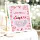 Guests bring diapers labeled with funny or encouraging messages for late-night changes, creating laughs now and smiles later for the parents-to-be. Display this sign on your gift or diaper table for a charming, organized setup. Coordinates beautifully with matching invitations, welcome signs, favor tags, menus, plates, napkins, and games from the full Valentine baby shower collection. 💌✨