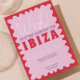 Destination Ibiza Hen Do Invite in Red and Pink Retro Wavy Border Hen Do Weekend Bachelorette Weekend Invite with Ibiza Hen Bachelorette Weekend Itinerary.
