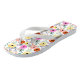 A beautiful floral watercolor design full of pink, red and yellow flowers on women's flip flops