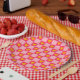 Pink Red Yellow Heart Love Chequered Y2K Pattern Paper Plate