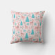 Pink Reindeer Blue Pine Tree Berries Snowflakes Cushion