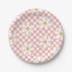 Pink Retro Chequered Daisy birthday Paper Plates