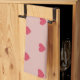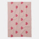 Pink Retro Heart Y2K Pattern With Pink Background Tea Towel