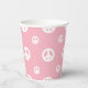 Two Groovy Retro Style Birthday party cups with peace signs in pink.